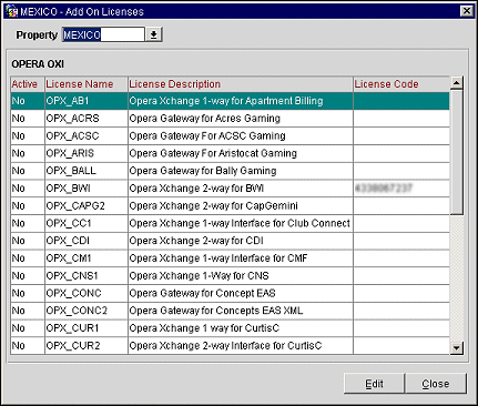 The OPERA PMS add-on license OPP_EXP must be active in OPERA.